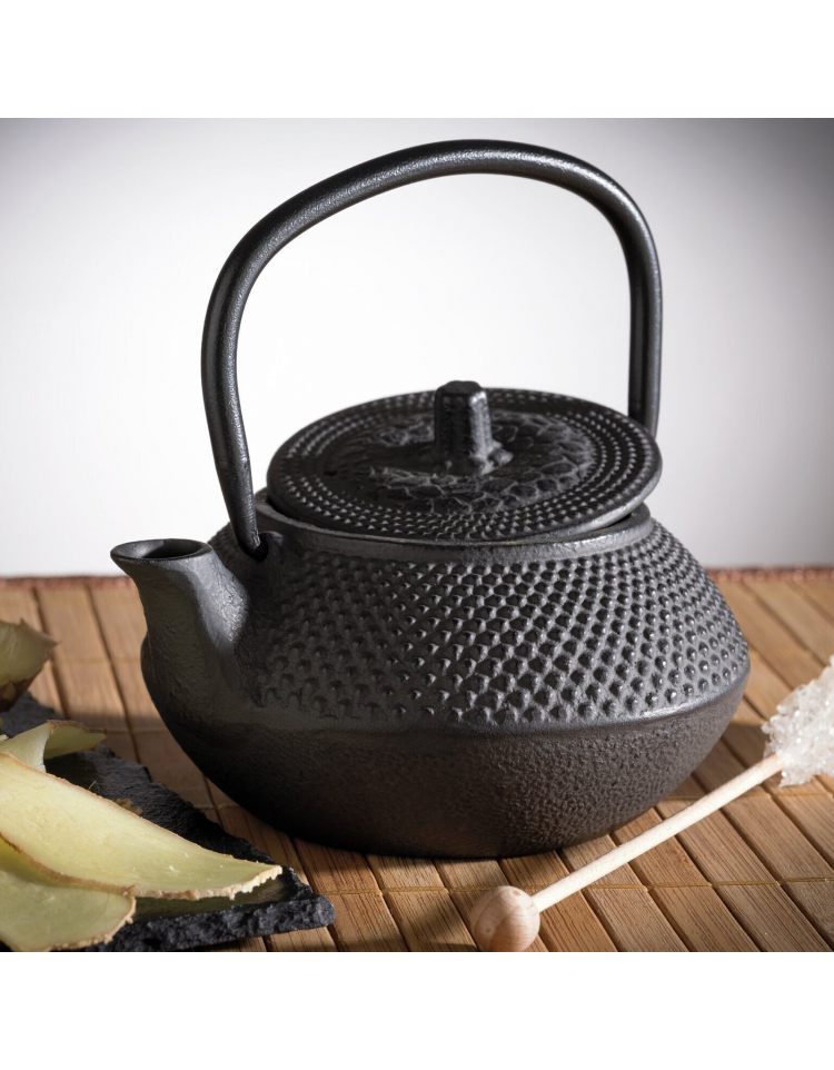 Teiera in ghisa smaltata senza colino - colore nero - capacità ml 300 - cm 12,5x11x12,5h