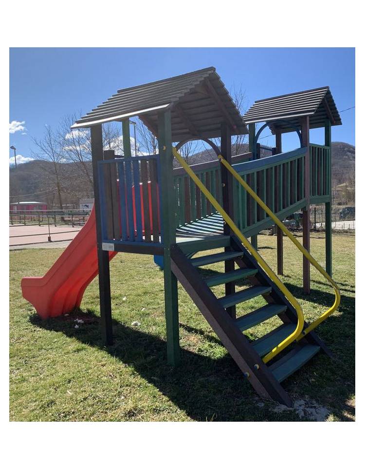 Torretta doppia con doppio scivolo in materiale ecologico di plastica riciclata post-consumo - Da inghisare interrare