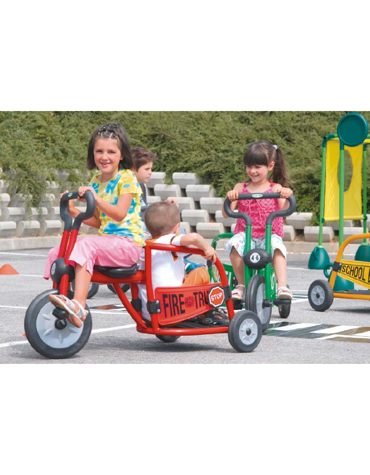 Triciclo biga, per immedesimarsi nel ruolo e inventare nuovi giochi. Sviluppo dei concetti del lavorare in squadra, perfetto compendio al programma Village. Sellino ergonomico e regolabile.