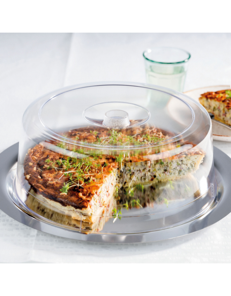 Vassoio rotondo in acciaio inox con coperchio trasparente in polistirene - diametro cm 38 - altezza cm 12