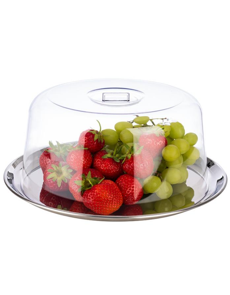 Vassoio rotondo in acciaio inox con coperchio trasparente in SAN - diametro cm 27 - altezza cm 12,5