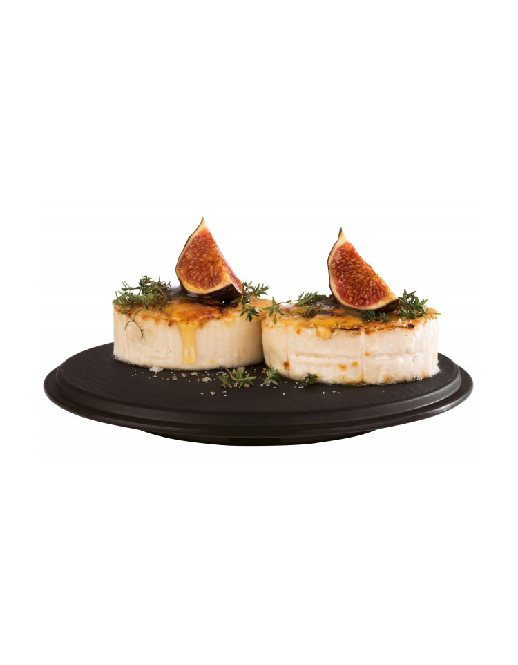 Vassoio rotondo per torta o formaggi in melamina effetto ardesia. Con piedini antiscivolo e bordo fissa-coperchio