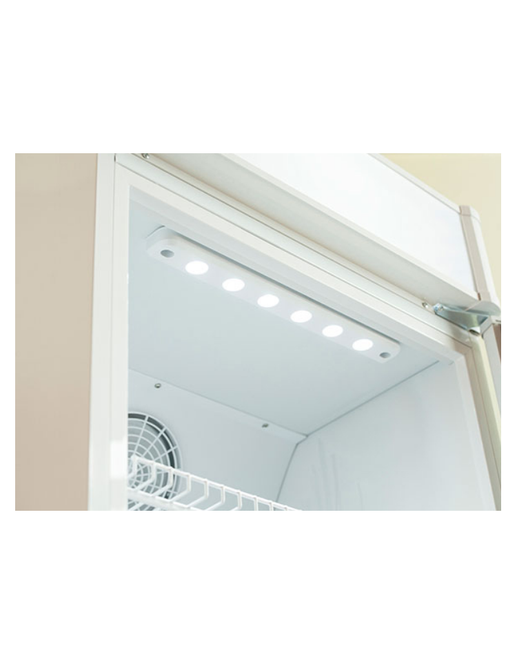 Il modello è stato progettato per essere una vetrina refrigerata per bevande affidabile e versatile, ideale per esporre e mantenere alla giusta temperatura qualsiasi tipo di bottiglia e lattina. Con una capacità di 350L, di colore bianco e con porta in vetro autochiudente, questo prodotto è equipaggiato con 5 ripiani regolabili, serratura, luce LED, luce LED e vetro temperato di sicurezza.