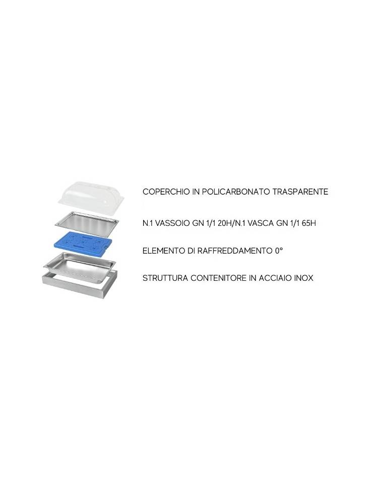 Vetrina buffet refrigerata, struttura acciaio inox e coperchio policarbonato - con 1 vassoio GN1/1 e elemento di raffreddamento