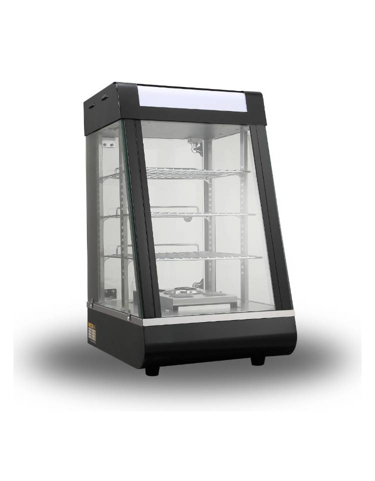 Vetrina calda da banco - 3 ripiani estraibili e regolabili - vetro scorrevole su 2 lati - luce interna - mm 1200x500x800h