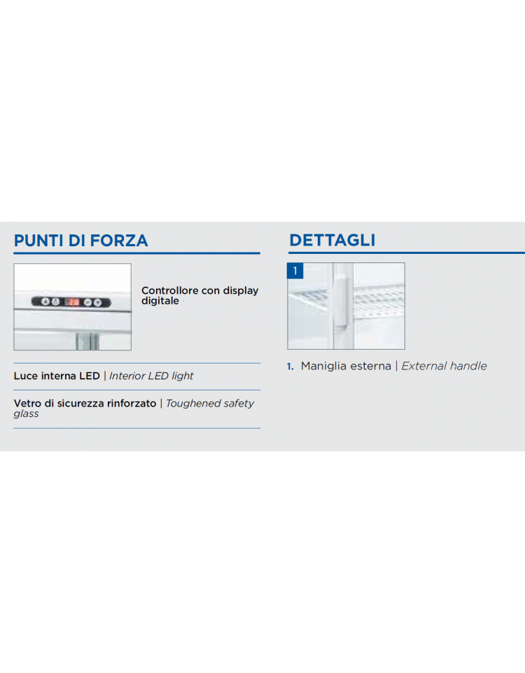 Vetrina espositiva colore bianco - refrigerazione ventilata, +2/+12°C - capacità Lt. 235 - Classe B - cm 51,5x48,5x169h
