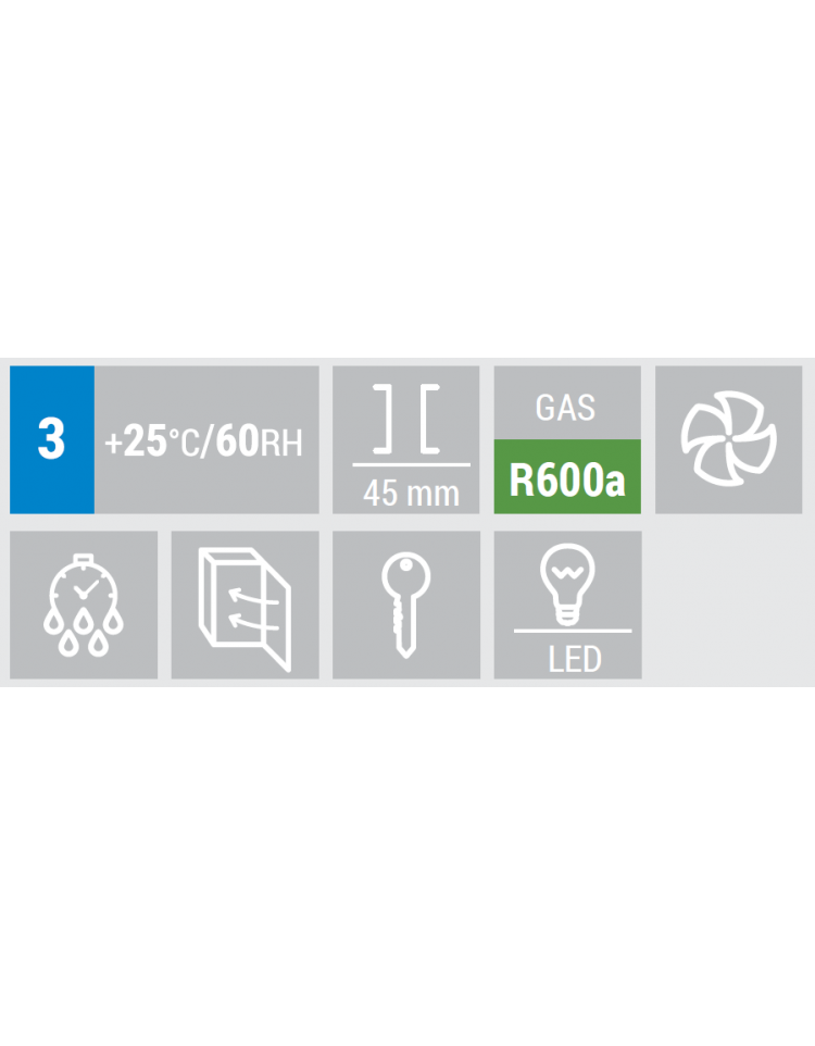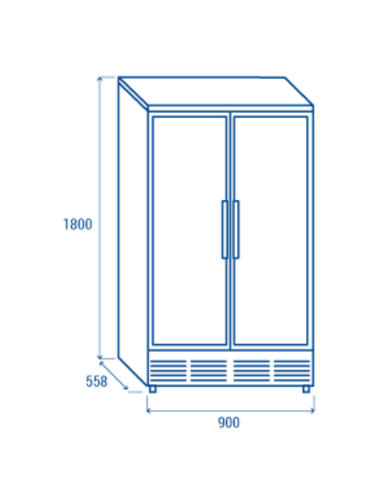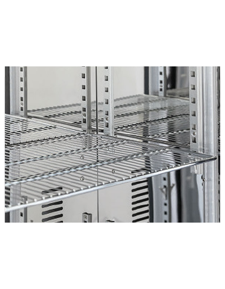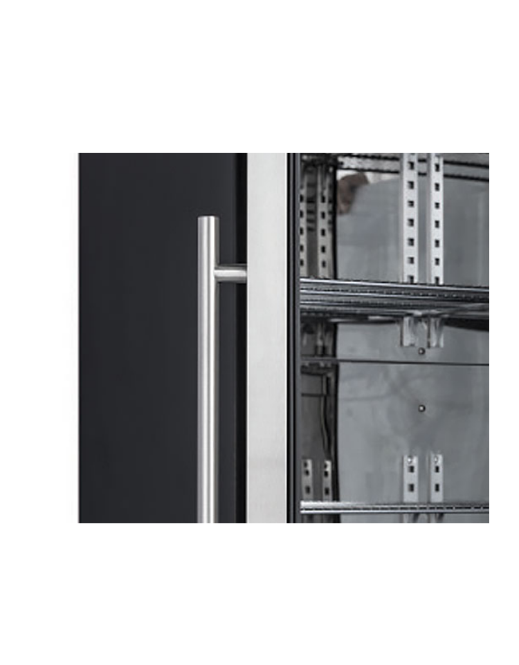 Il modello è stato progettato per essere una vetrina refrigerata per bevande affidabile e versatile, ideale per esporre e mantenere alla giusta temperatura qualsiasi tipo di bottiglia e lattina. Con una capacità di 458 litri, rifinito in acciaio verniciato nero all’esterno e con acciaio inossidabile a specchio all’interno, questo prodotto è equipaggiato con due porte a vetro con telaio in acciaio inox e maniglie cilindriche verticali, display digitale, 5 ripiani cromati regolabili, luce LED verticale interna con interruttore indipendente, porta autochiudente e serratura.