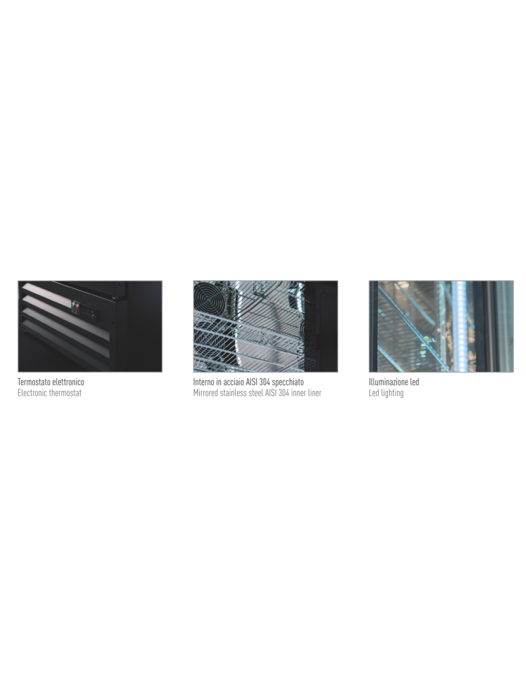 Vetrina frigo per vini ventilata, temperatura 0°C/+10°C - interno in AISI 304 specchiato -140 bottiglie - cm 60x53x182h