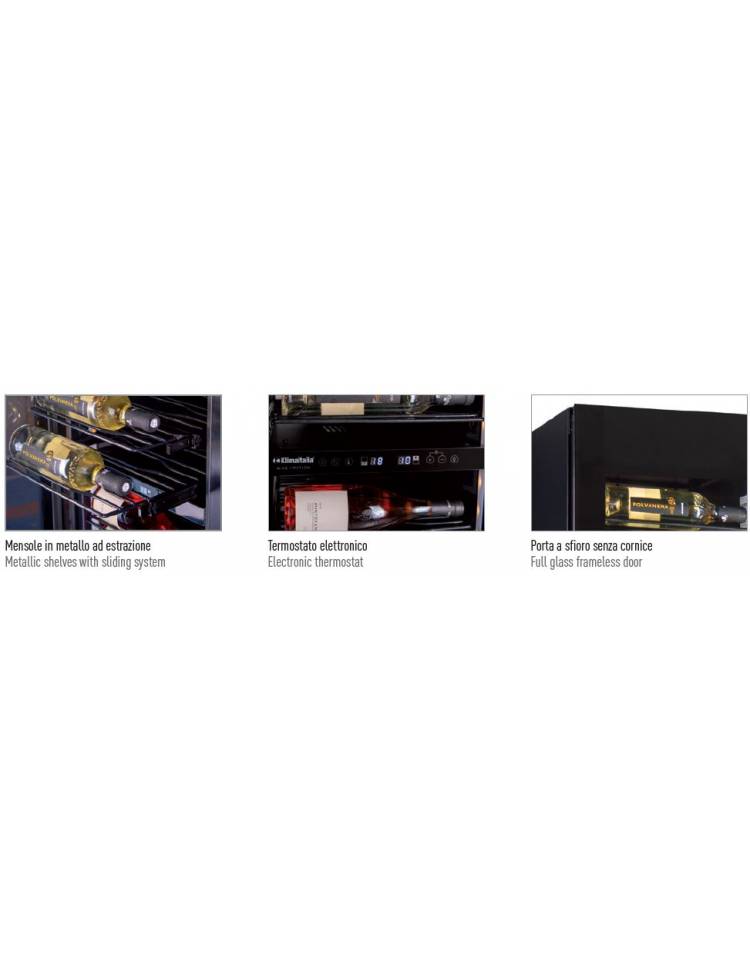 VETRINA FRIGO PER VINO SLIM VENTILATA +2° +20°C - CAPACITA' N° 112 BOTTIGLIE CL 75 - PORTA A SFIORO - CM 45x70x180,4h