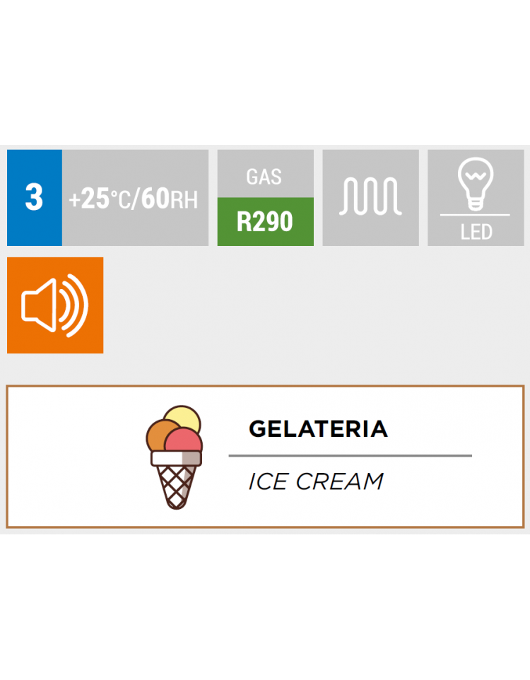 La vetrina per gelateria riesce a catturare lo sguardo del visitatore grazie alla sua raffinatezza, e allo stesso tempo è in grado di adattarsi a qualsiasi contesto grazie alla sua discrezione.Questo modello con porta singola da 700mm e refrigerazione statica, è disegnato per valorizzare i prodotti esposti al suo interno grazie ai 4 lati in vetro panoramico con serigrafia nera, ai 5 ripiani in vetro ed alle 4 luci interne a LED. Dotata di termostato digitale con connessione Wi-Fi che consente di monitorare e regolare la temperatura interna da smartphone o tablet.