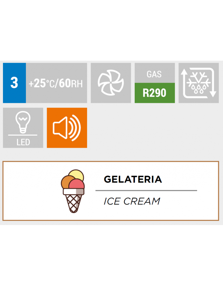 Vetrina gelateria panoramica congelatore - ventilata -22°/+5°C - colore nero - Classe B - cm 45x65x190h