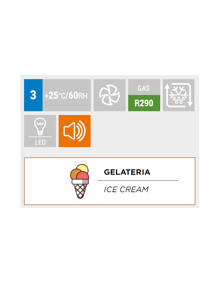 La vetrina per gelateria riesce a catturare lo sguardo del visitatore grazie alla sua raffinatezza, e allo stesso tempo è in grado di adattarsi a qualsiasi contesto grazie alla sua discrezione.Questo modello con porta singola da 900mm, è disegnato per valorizzare i prodotti esposti al suo interno grazie ai 4 lati in vetro panoramico con serigrafia nera, ai 5 ripiani in vetro ed alle 4 luci interne a LED. Dotata di termostato digitale con connessione Wi-Fi che consente di monitorare e regolare la temperatura interna da smartphone o tablet.