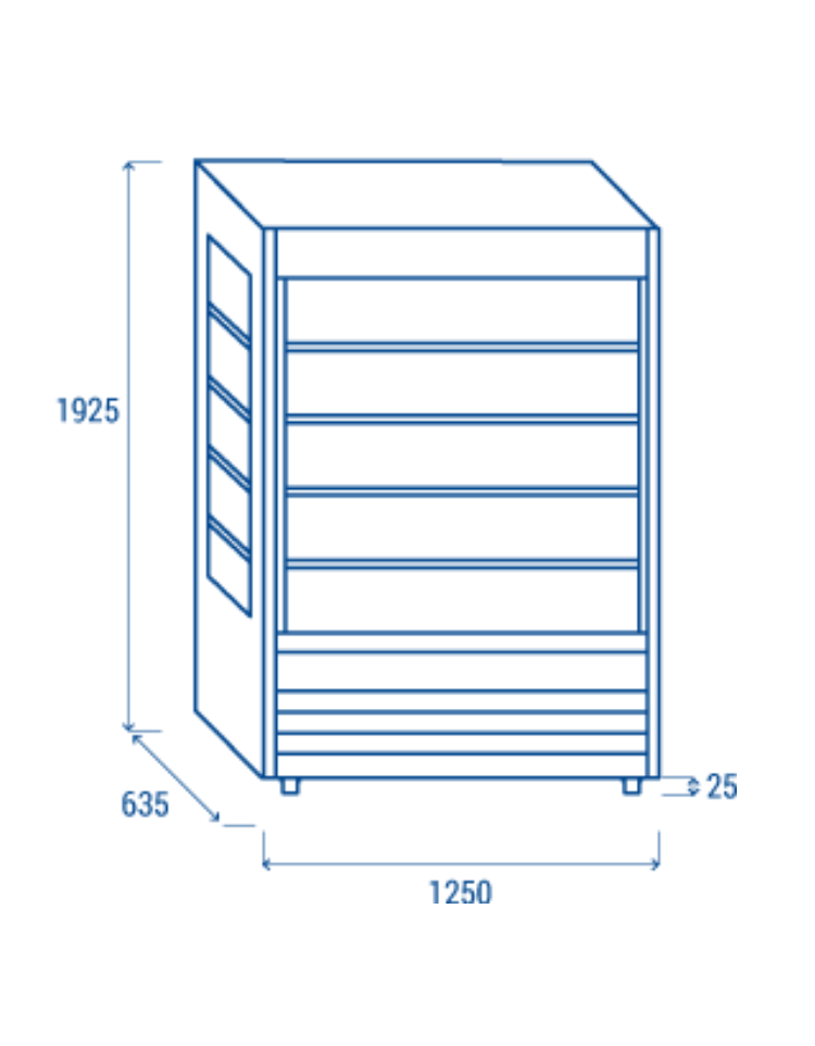 Vetrina murale senza porte - esterno in acciaio verniciato grigio - refrigerazione ventilata - cm 125x63,5x195,1h