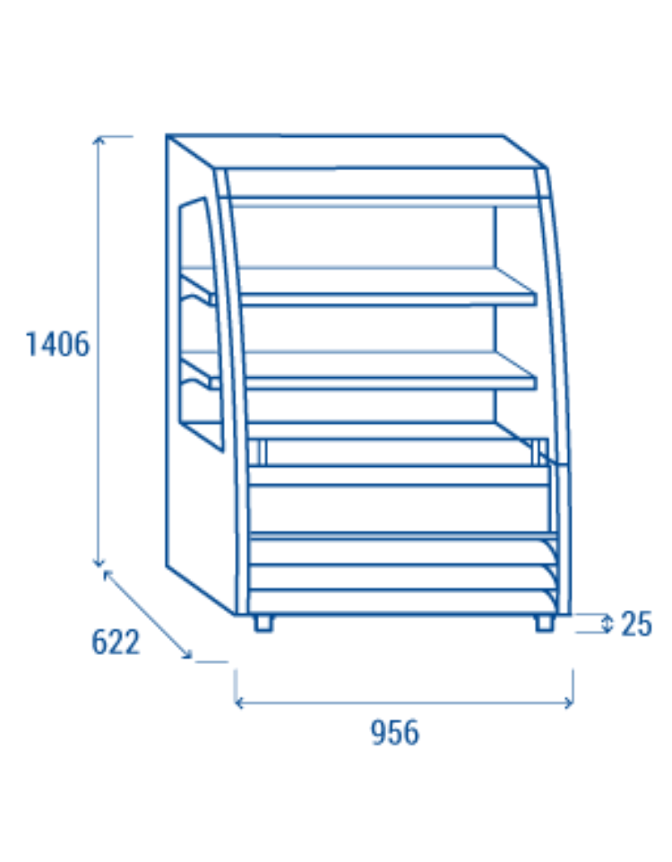 La perfetta combinazione tra flessibilità e bassi consumi. Il modello con una larghezza di 960 mm, rappresenta una soluzione affidabile per i rivenditori di generi alimentari. È l’epositore refrigerato ideale per latticini, bevande o carni confezionate. Equipaggiato con luci LED sotto ad ognuno dei ripiani in vetro, doppio vetro panoramico laterale. Il modello è stato progettato per l’esposizione di qualsiasi alimento meriti la giusta visibilità sul tuo bancone e viene fornito in gas ecologico R290 per garantire un risparmio energetico e prestazioni ottimali
