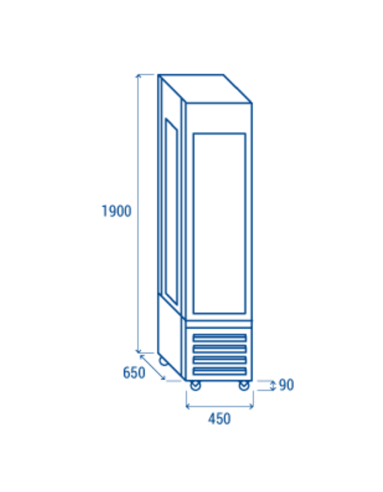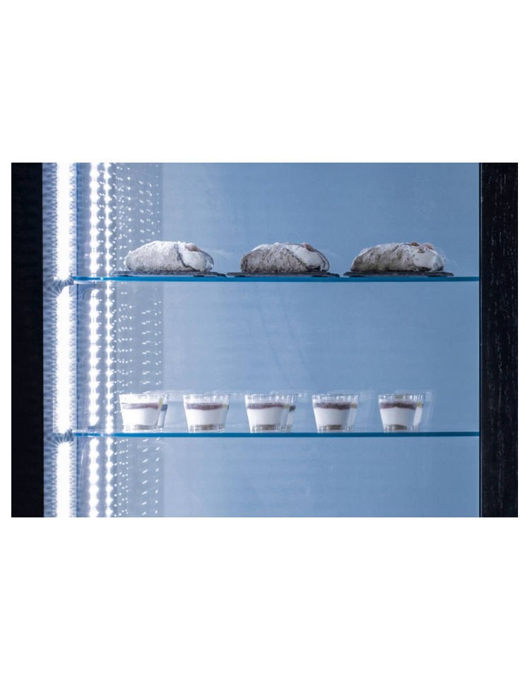 La vetrina per pasticceria riesce a catturare lo sguardo del visitatore grazie alla sua raffinatezza, e allo stesso tempo è in grado di adattarsi a qualsiasi contesto grazie alla sua discrezione. Questo modello con porta singola da 450mm è stato pensato per gli spazi meno ampi, e disegnato per valorizzare i prodotti esposti al suo interno grazie ai 4 lati in vetro panoramico con serigrafia nera, ai 5 ripiani in vetro ed alle 4 luci interne a LED. In classe energetica A, è dotata di termostato digitale con connessione Wi-Fi che consente di monitorare e regolare la temperatura interna da smartphone o tablet.