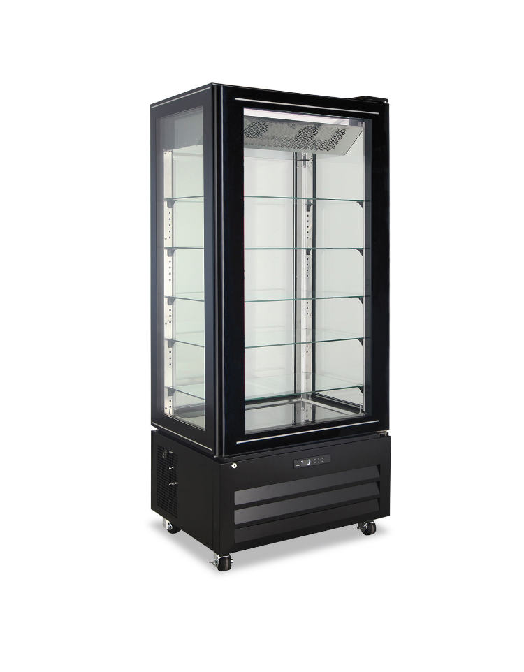 Vetrina pasticceria panoramica refrigerata - ventilata -2°/+10°C - colore nero - Classe A - cm 90x65x190h