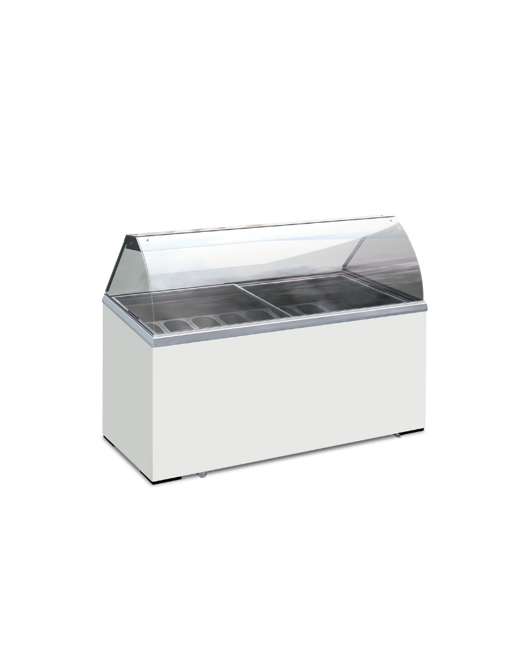 Vetrina per gelato statica - 8 vaschette inox (non incluse) - Lt. 467 - temp. -13°/- 23°C - Classe A - cm 155,5x63,5x124h