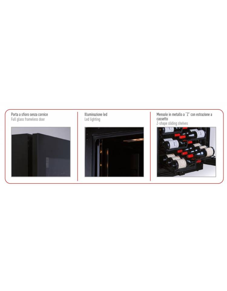 Vetrina per vini ventilata - 1 porta in vetro senza cornice - N° 68 Bottiglie vino- temperatura +2°C+20°C - cm 59,5x70x121h