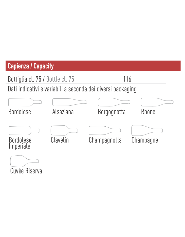 Capacità: 116 bottiglie da cl. 75