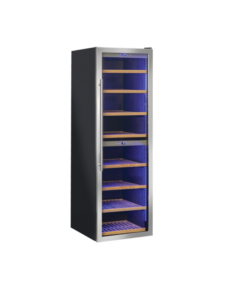 Vetrina per vini ventilata - 1 porta - N° 116 Bottiglie vino - Doppia temperatura +2°C+12°C / +12°C+20°C - cm 59,5x70x180,4h