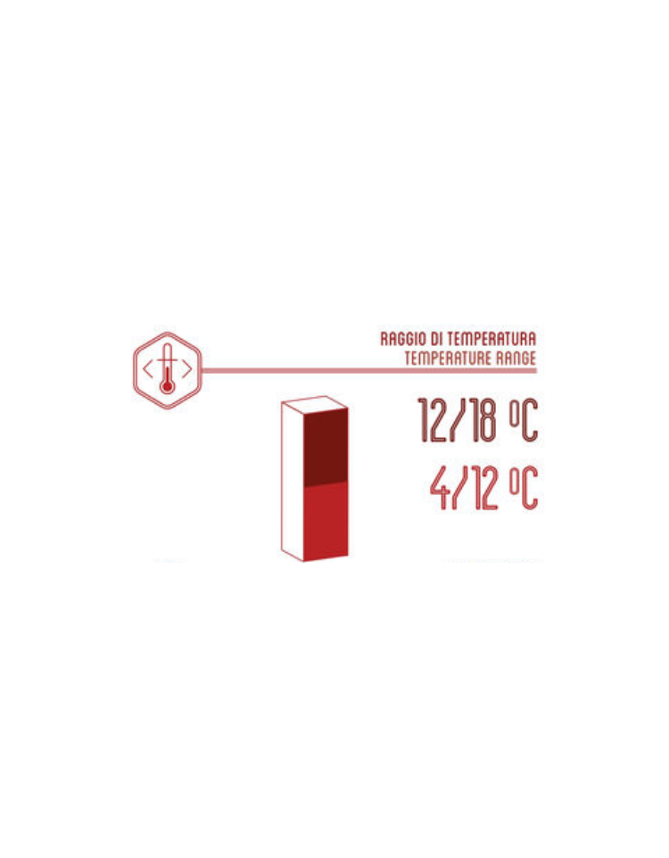Vetrina per vini ventilata - 1 porta - N° 56 Bottiglie vino - doppia temperatura +2°C+12°C / +12°C +20°C - cm 59,5x69x120h
