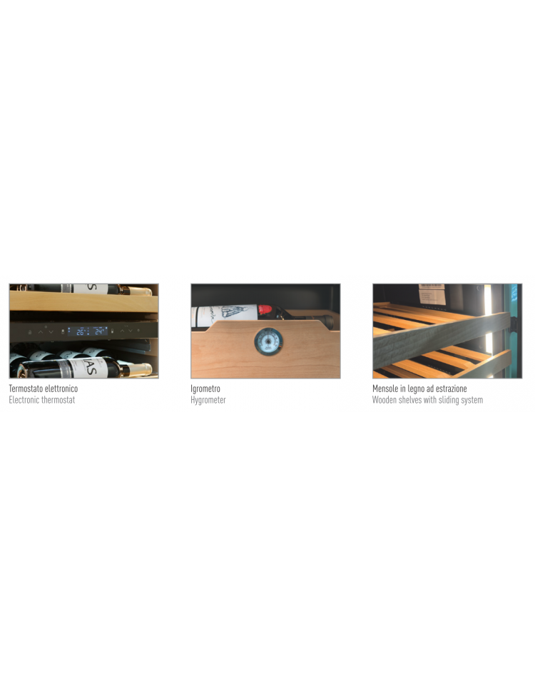 Vetrina per vini ventilata +2°/+20 °C - capacità 90 bottiglie cl. 75 - colore superficie esterna nera o bianca - cm 54x55x160h