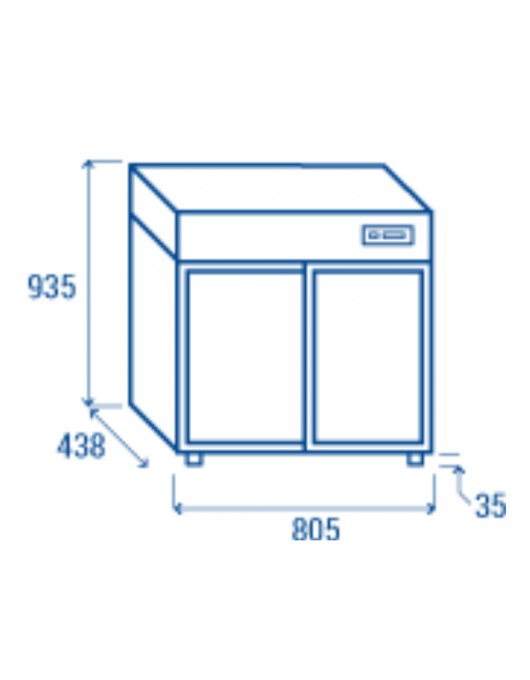 Vetrina refrigerata da banco con vetro dritto e struttura in acciaio, equipaggiata con luci LED, doppio vetro anti condensa, sportelli posteriori scorrevoli e ripiani regolabili cromati. Il modello è stato progettato per l’esposizione di qualsiasi alimento meriti la giusta visibilità sul tuo bancone.