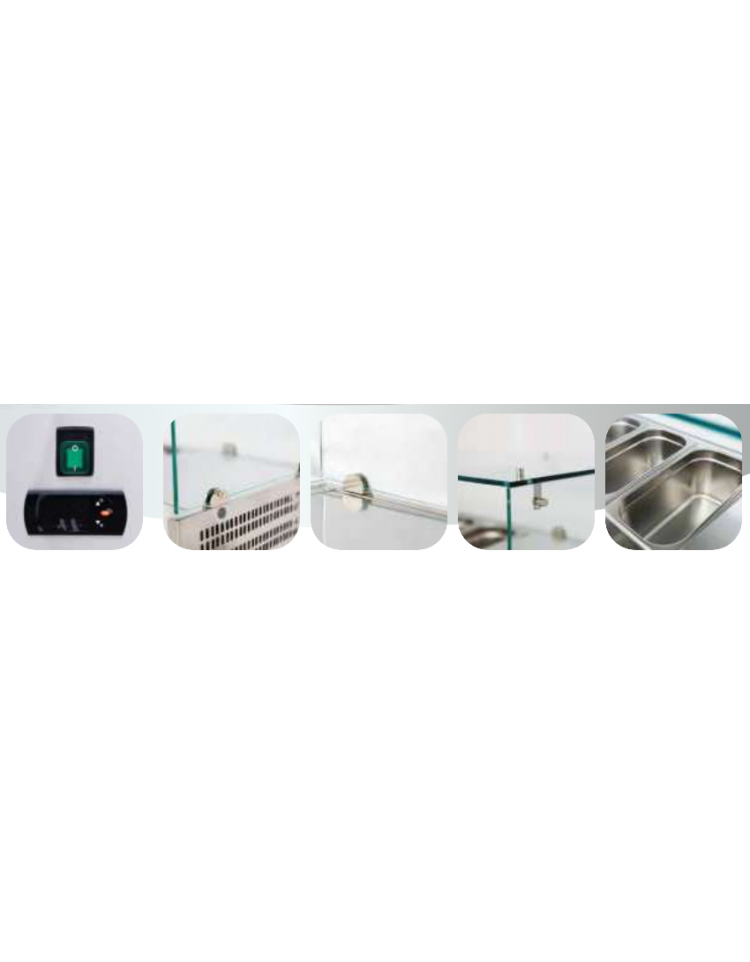Vetrina refrigerata in acciaio inox con vetri per banco pizzeria - predisposta per 5 bacinelle GN 1/4 - mm 1200x335x435h