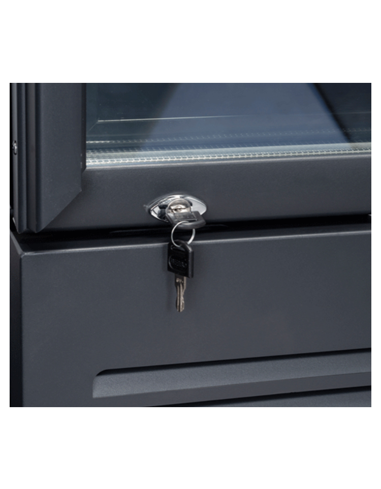 Vetrina refrigerata in acciaio verniciato nero, 2 porte a battente in vetro - temp. 1°/+10° C - cm 125,3x74x204h