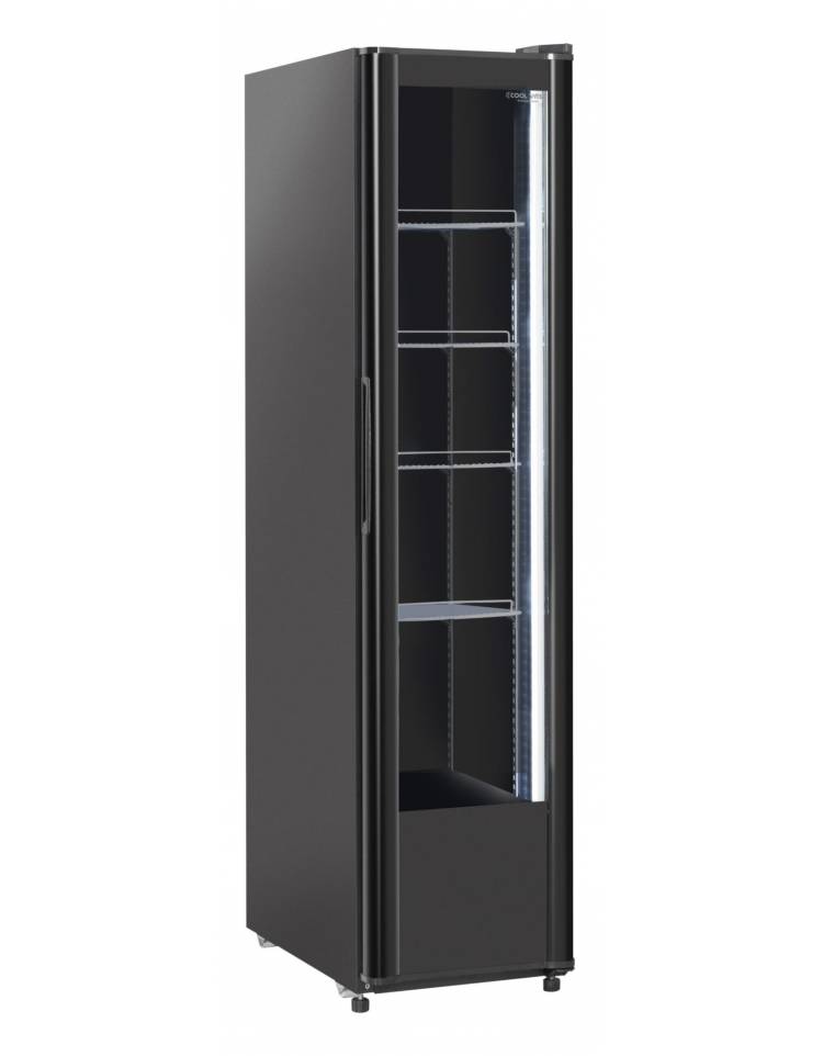 Vetrina slim per bibite in acciaio verniciato nero - Lt 300 - refrigerazione Roll-Bond +2°/+8°C - Classe D - cm 44x70,8x184h