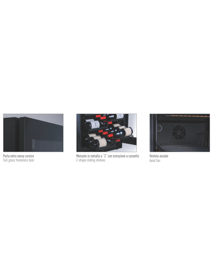 Vetrina vini ventilata doppia porta, 2 zone di temperatura da +2°C+20°C cad. - N° 256 bottiglie - cm 121x70x180,4h