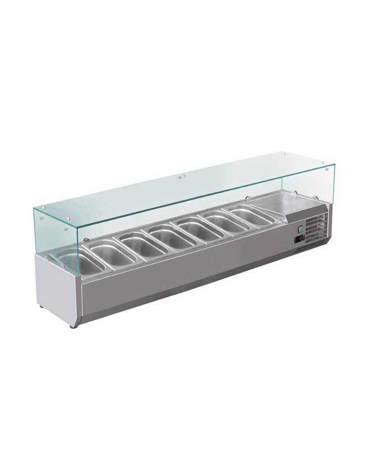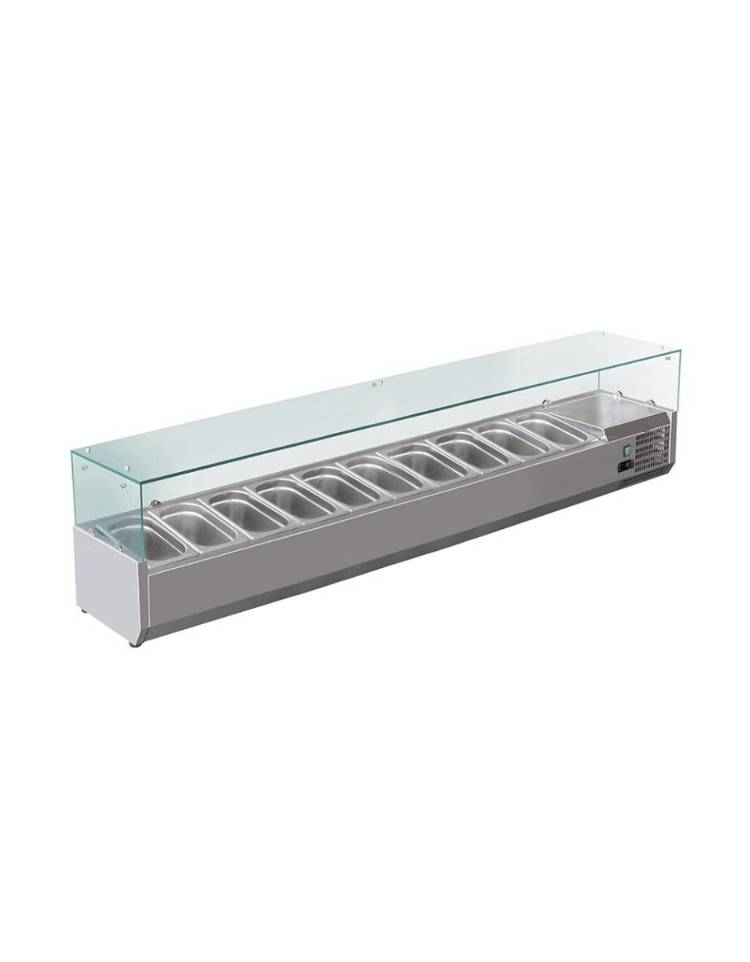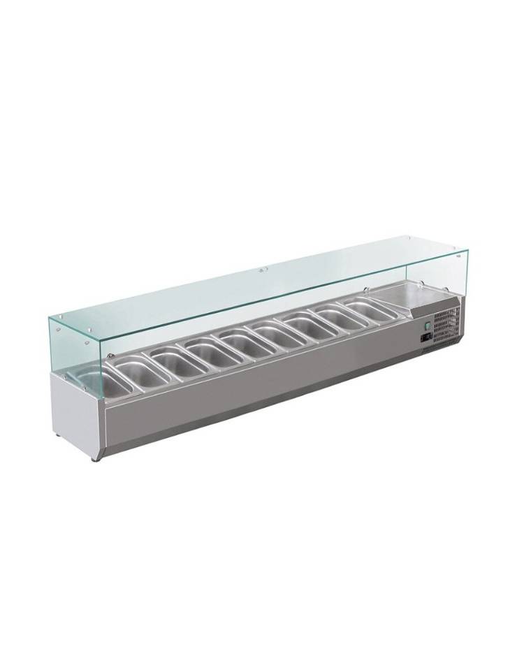 Vetrinetta refrigerata per pizzeria, in acciaio inox con vetri - predisposta per 10 bacinelle GN1/4 - mm 2000×335×430h